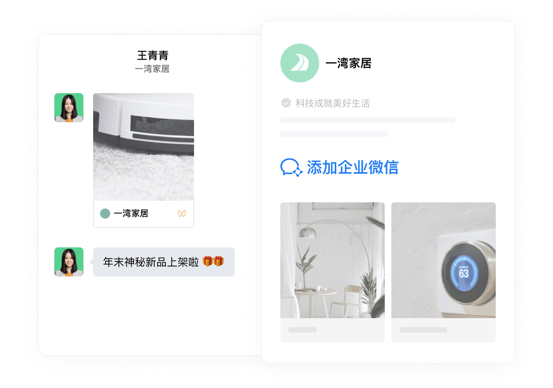 可在单聊、群聊、朋友圈中邀请客户观看视频号动态和直播;还可在视频号主页和直播间展示成员的联系方式,客户点击即可添加。