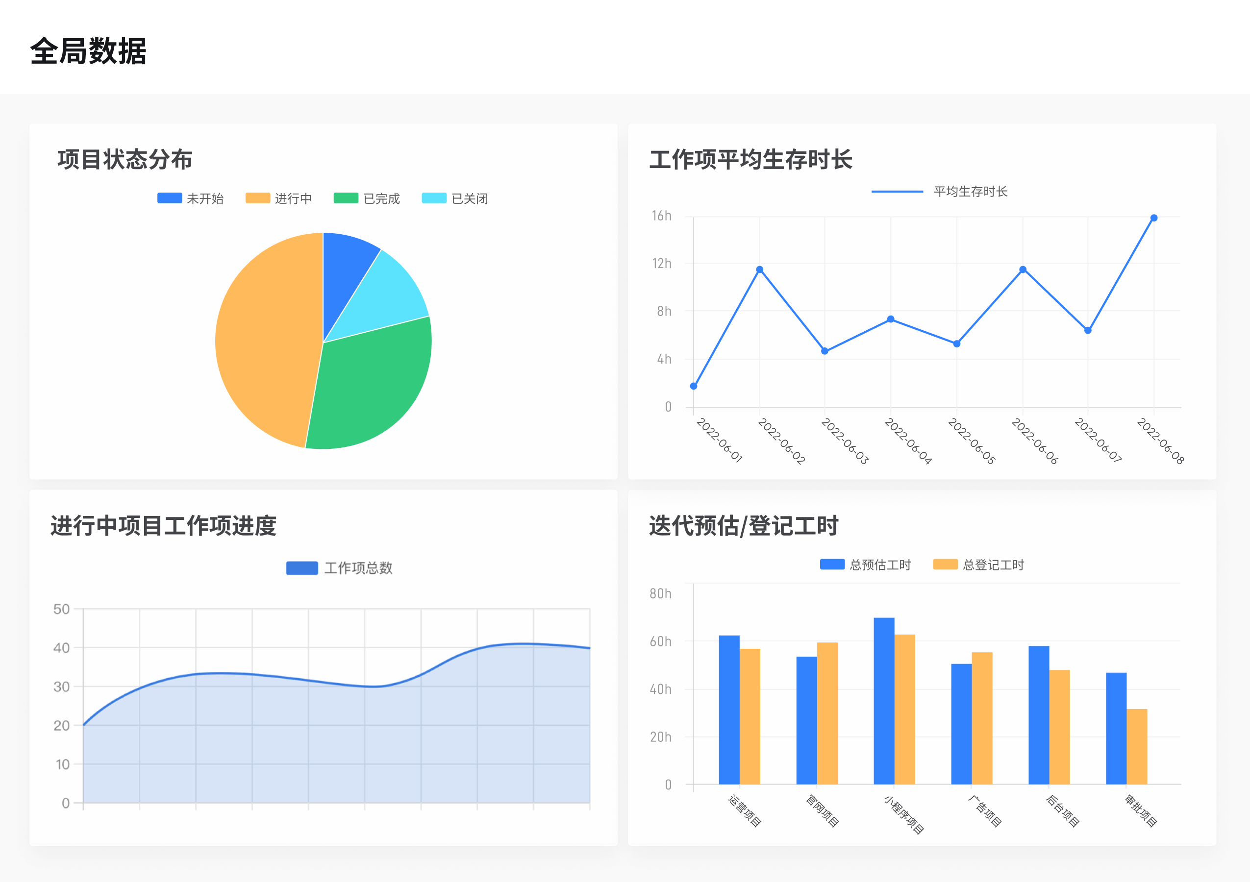 实现从项目到任务的多层级规划, 丰富的可视化图表,实时追踪执行进度。