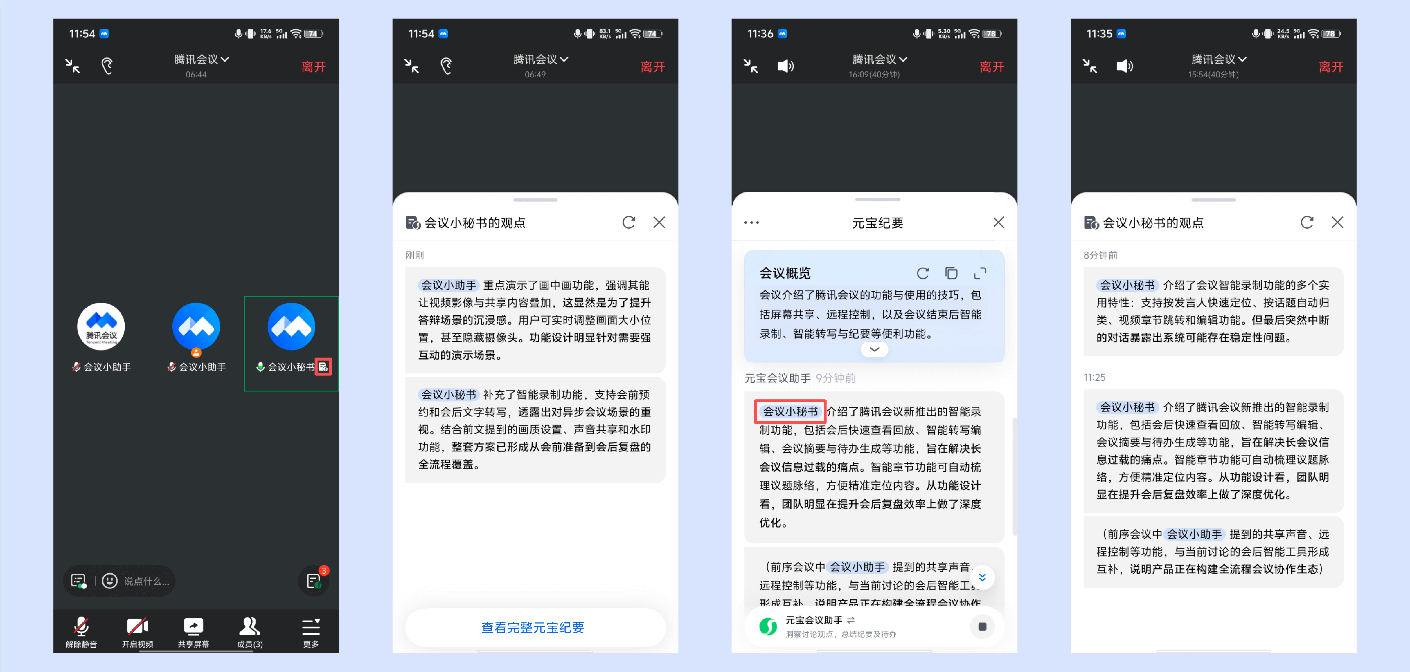 会议小结:快速总结会中各成员的观点,方便回顾刚刚会议上发生的内容。